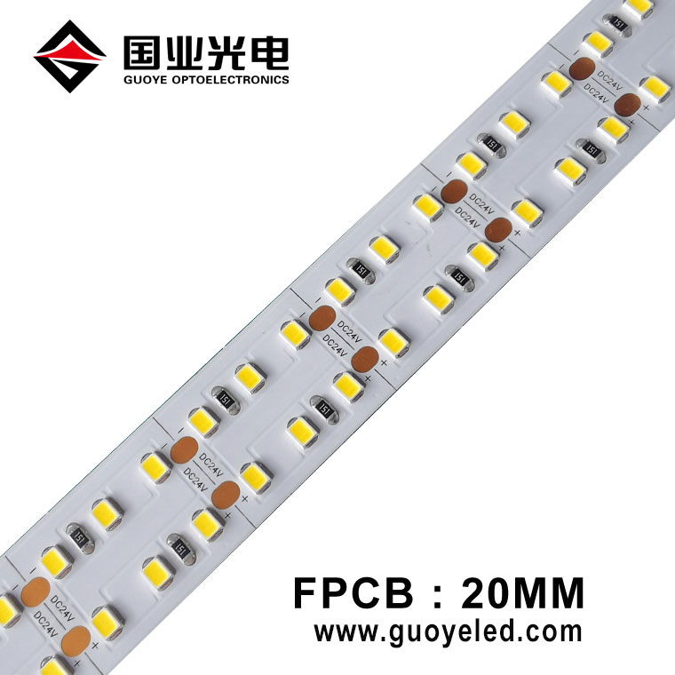แถบนำแสงกว้างพิเศษขนาด 20 มม. ใช้แผงวงจรทองแดงไฟฟ้าสองด้าน และ 2835 ลูเมนสูง SMD 240 ชิ้นต่อเมตร กำลังไฟ 10W ถึง 30 วัตต์ต่อเมตร ความสว่าง พลังงาน อุณหภูมิสีและ CRI/RA สามารถปรับแต่งได้
